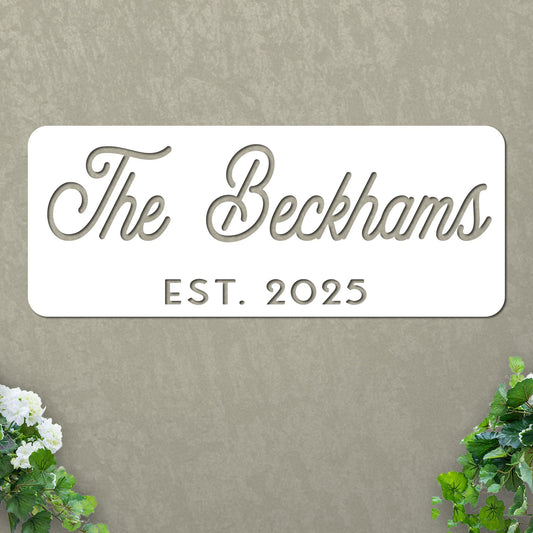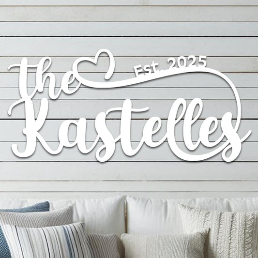 A personalized family established name plaque makes a memorable gift for any newlyweds or a special couple celebrating an upcoming wedding anniversary. It also makes a great gift for other occasions, including bridal showers and housewarmings. We offer a great selection of personalized family name signs, family established signs and plaques. Our custom signs are one of our best sellers and are by far our customer's number one choice for a memorable wedding, anniversary, or housewarming gift. Or, if shopping for yourself, add a personal touch to your own home with a family established name sign! Personalize Your Family Name Sign Our plaques are available in several shapes, sizes, and colors and can be customized with monograms, names, established dates, and even quotes. This adds character to the artwork making each piece unique. Custom sizes and designs are also available by request. Our family name sign allows you to add your family members' first names to the sign, along with the large monogrammed initial, last name, and established date. Family Name Signs, Last Name, and Est. Signs make special personalized gifts! These unique gifts for families are an excellent way to express your thanks, congratulations, or welcome to the neighborhood! Most can be personalized not only with the family name but also with the established year or full marriage date. Suitable for indoor use, these elegant metal signs can be placed upright on a mantle, a bookshelf, or simply hang up in a special place on your wall. You'll love how your new modern family sign will add personality and character to any room or space you choose to display it. It's an investment that will be enjoyed and last for many years to come! Family Established Signs - - custom made Home of the Family Name with Established Year sign includes traditional accents, family name, and date of establishment. Make your family proud by displaying one of our signs at home. Are you struggling about what to give your dad on this coming father's day? Or Christmas? Struggle no more. Give him –or mom –a remembrance of the marvelous family they have formed: one of our customizable family established signs. Family Established signs and plaques are both excellent choices for housewarming gifts, anniversaries, or to dress up your own home –for instance, your living room. Everyone should have a piece of artwork for their home that is personalized to their style. You can get high quality, personalized decor that ships in fast! Search through our extensive catalog for the many ready-to-go options we have for you. You can always add personalization to our items, according to your taste and preferences. Opt for high-quality, durable, and beautiful family established signs.