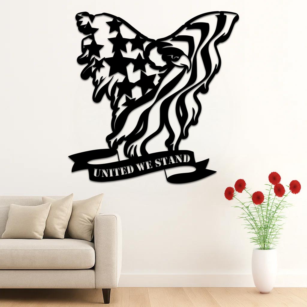 Enhance your living or outdoor space with the striking design of the American Flag Eagle, which captures the essence of "United We Stand." This beautifully crafted piece is made from durable 16-gauge steel, making it suitable for display both indoors and outdoors. Each sign is meticulously finished with high-quality paint, ensuring it withstands the elements while maintaining its vibrant appearance over time.