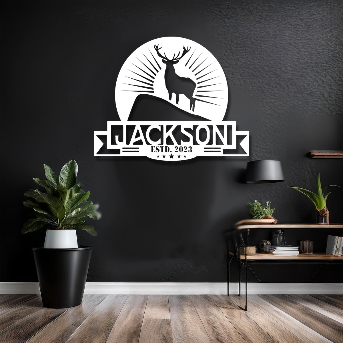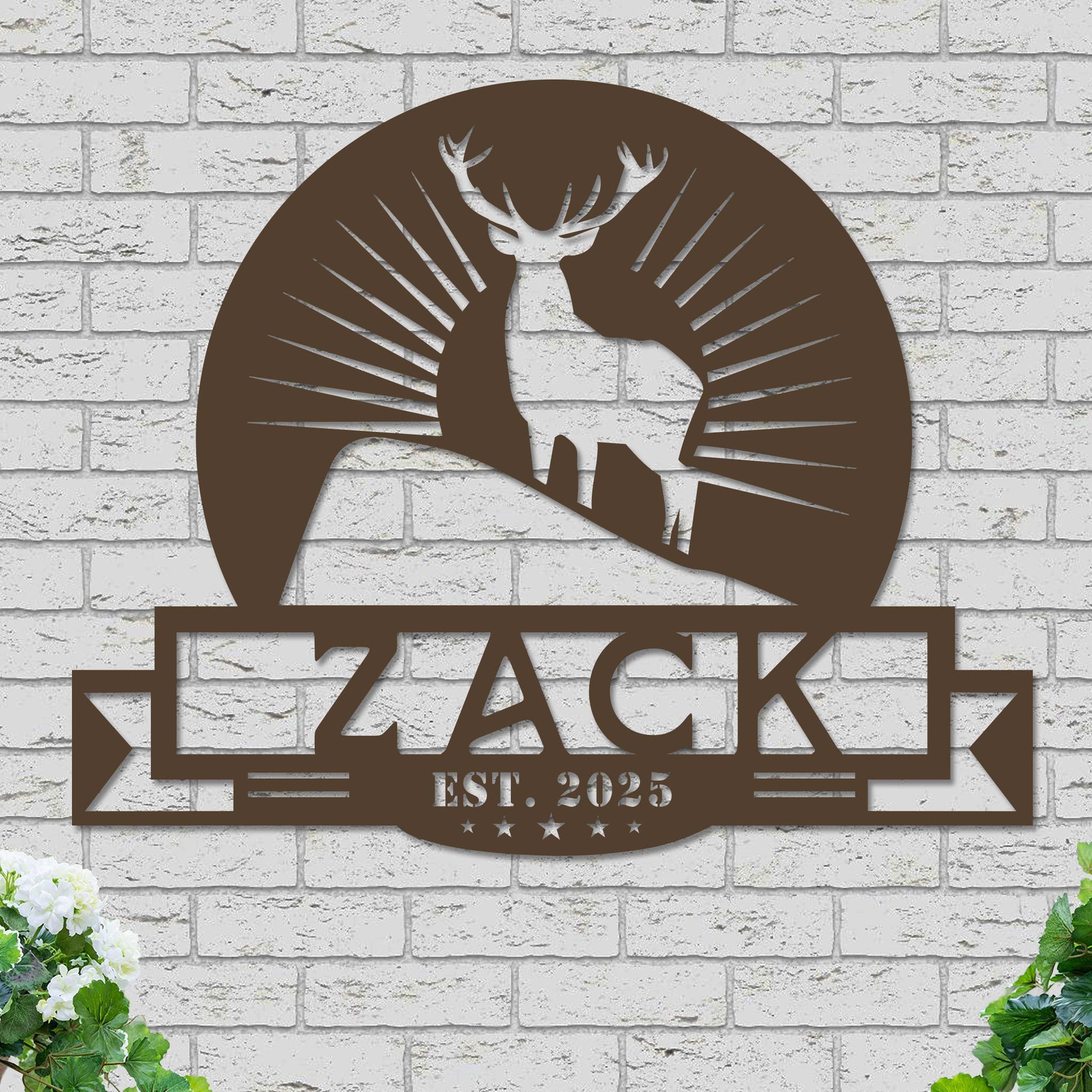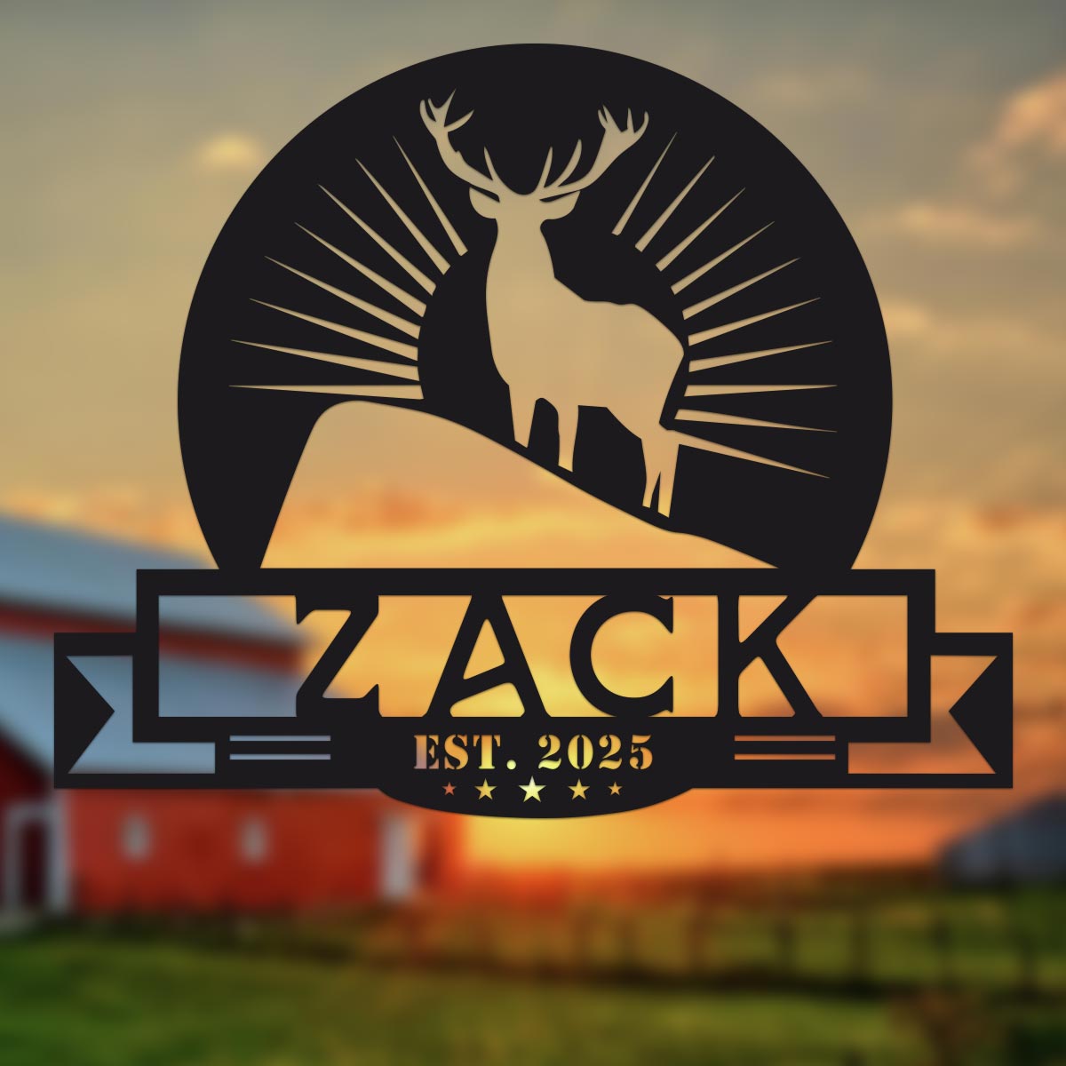 Transform your surroundings with our custom-designed piece that features a delightful deer and sunburst motif, ideal for both indoor and outdoor settings. Made from robust 16-gauge steel, this item is finished with high-quality paint that enhances its durability and maintains its vibrant colors over time. Its rustic elegance brings a personal touch to any room, making it a perfect addition to your home decor.