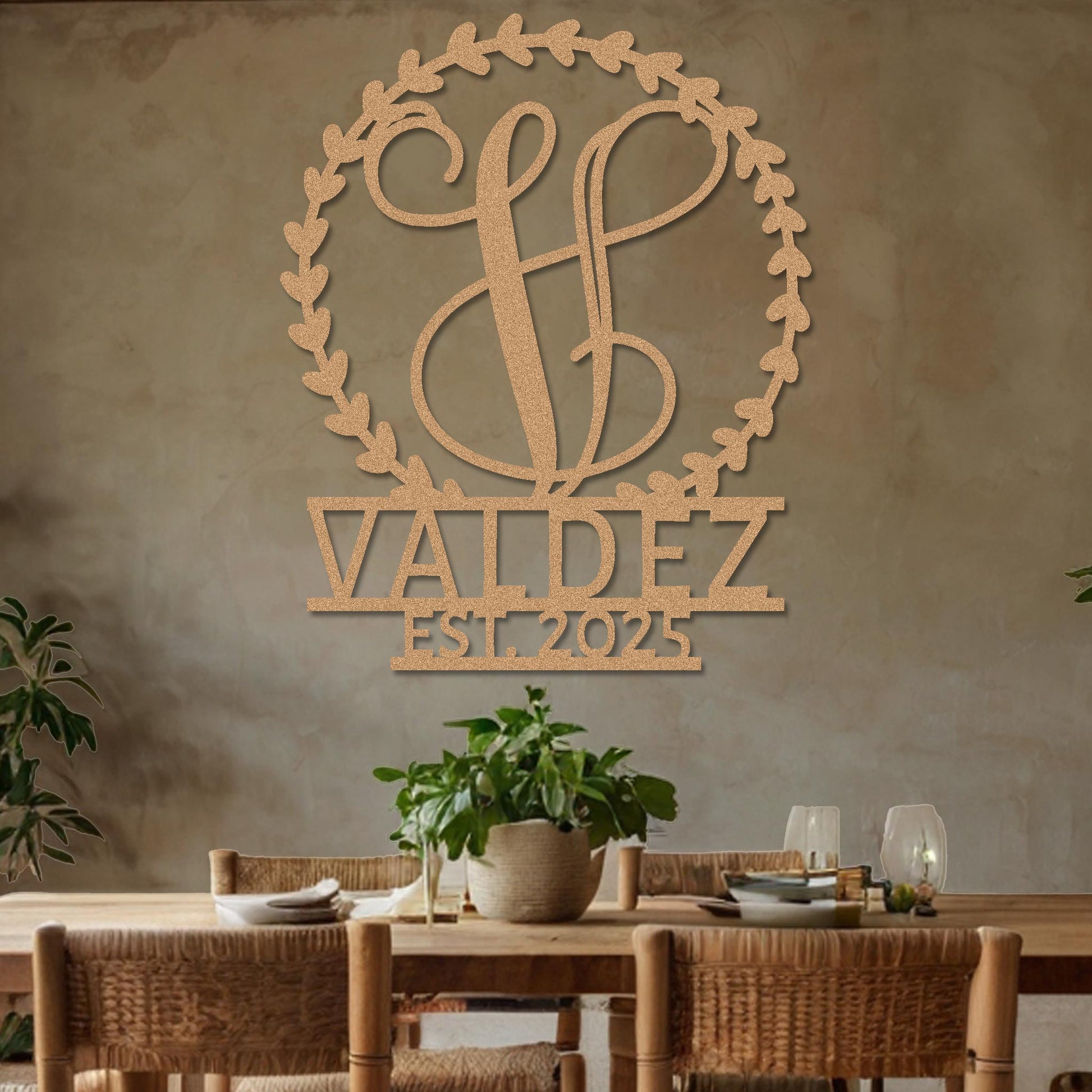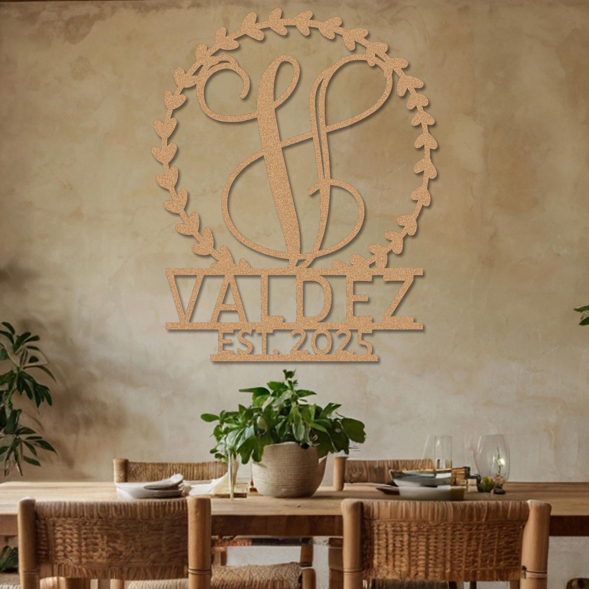 Elevate your home decor with our Family Monogram Sign in Wreath, an exquisite piece crafted for both indoor and outdoor use. Made from sturdy 16-gauge steel, this sign is coated with premium-grade paint to ensure it withstands the test of time and various weather conditions. Its elegant design makes it an ideal addition to any room, providing a personal touch to your space.