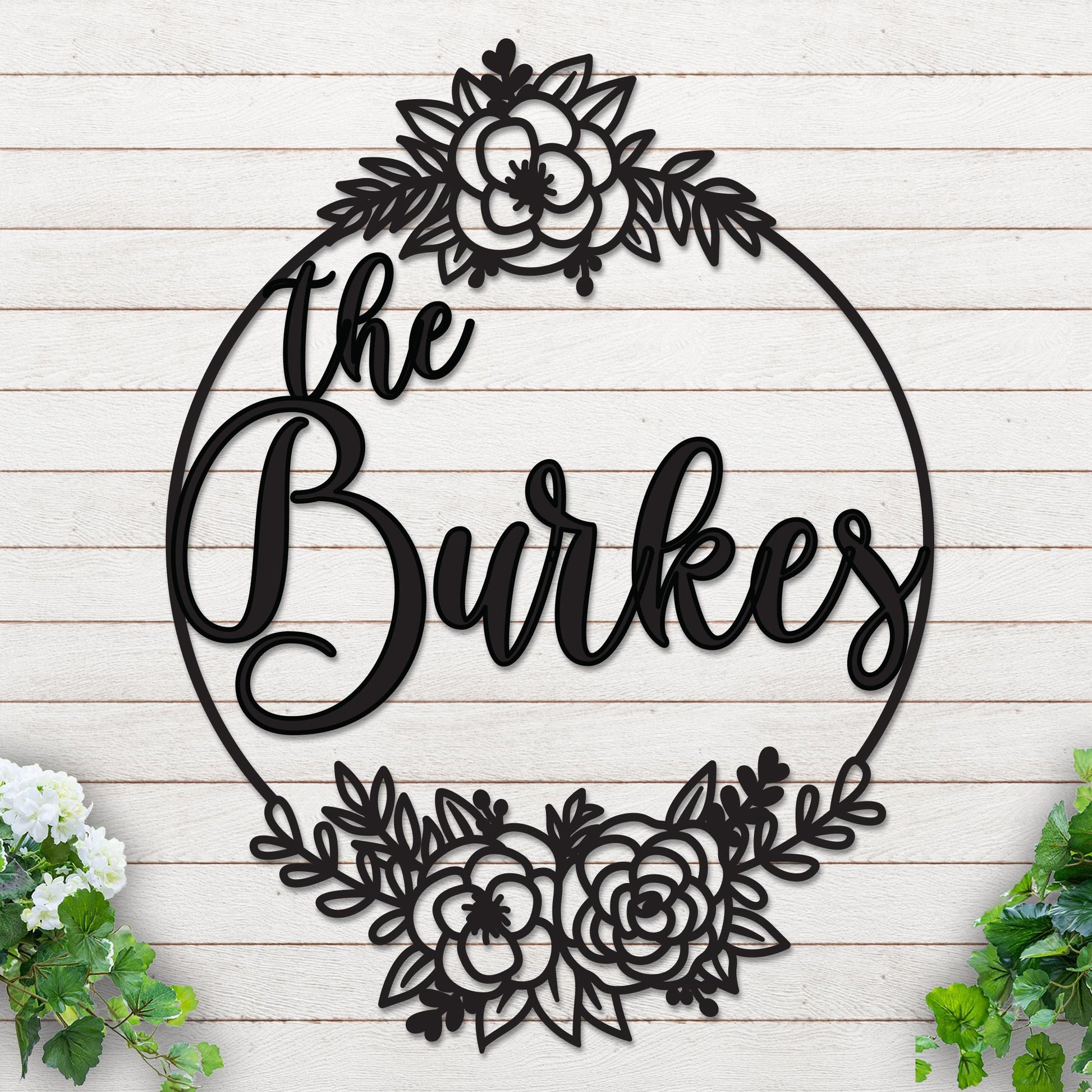 Whether you're looking to add a personal touch to your living room, bedroom, or garden, this Family Name design with roses serves as a unique decoration that showcases your personal style. If you have any inquiries regarding our custom options, our dedicated customer service team is ready to assist you from 8 AM to 11 PM EST.