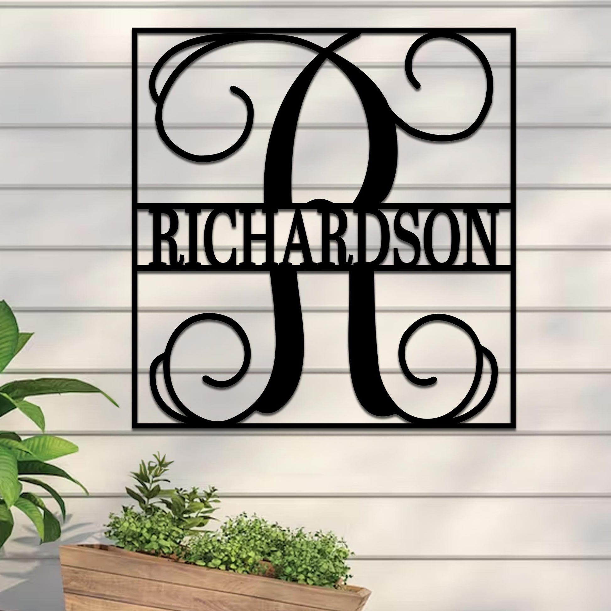 Elevate your space with our Fancy Split Monogram Square Sign, designed for both indoor and outdoor use. Crafted from durable 16-gauge steel, this sign features a premium-grade paint finish that ensures long-lasting resilience against the elements. Its elegant design provides a stylish focal point, making it ideal for decorating any room or outdoor area.