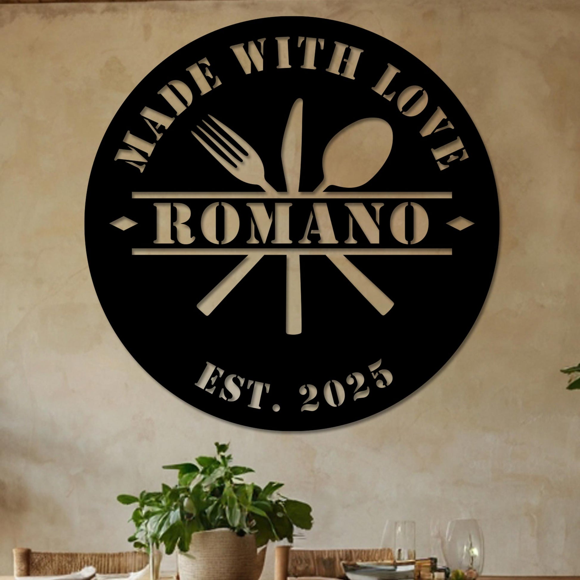 Enhance your home décor with our versatile Kitchen Family Sign, designed for both indoor and outdoor use. Crafted from durable 16-gauge steel and coated with high-quality paint, this sign is built to withstand the elements while maintaining its appealing look. Its sleek design and attention to detail will fit seamlessly into any setting, adding a personal touch that honors family connections.