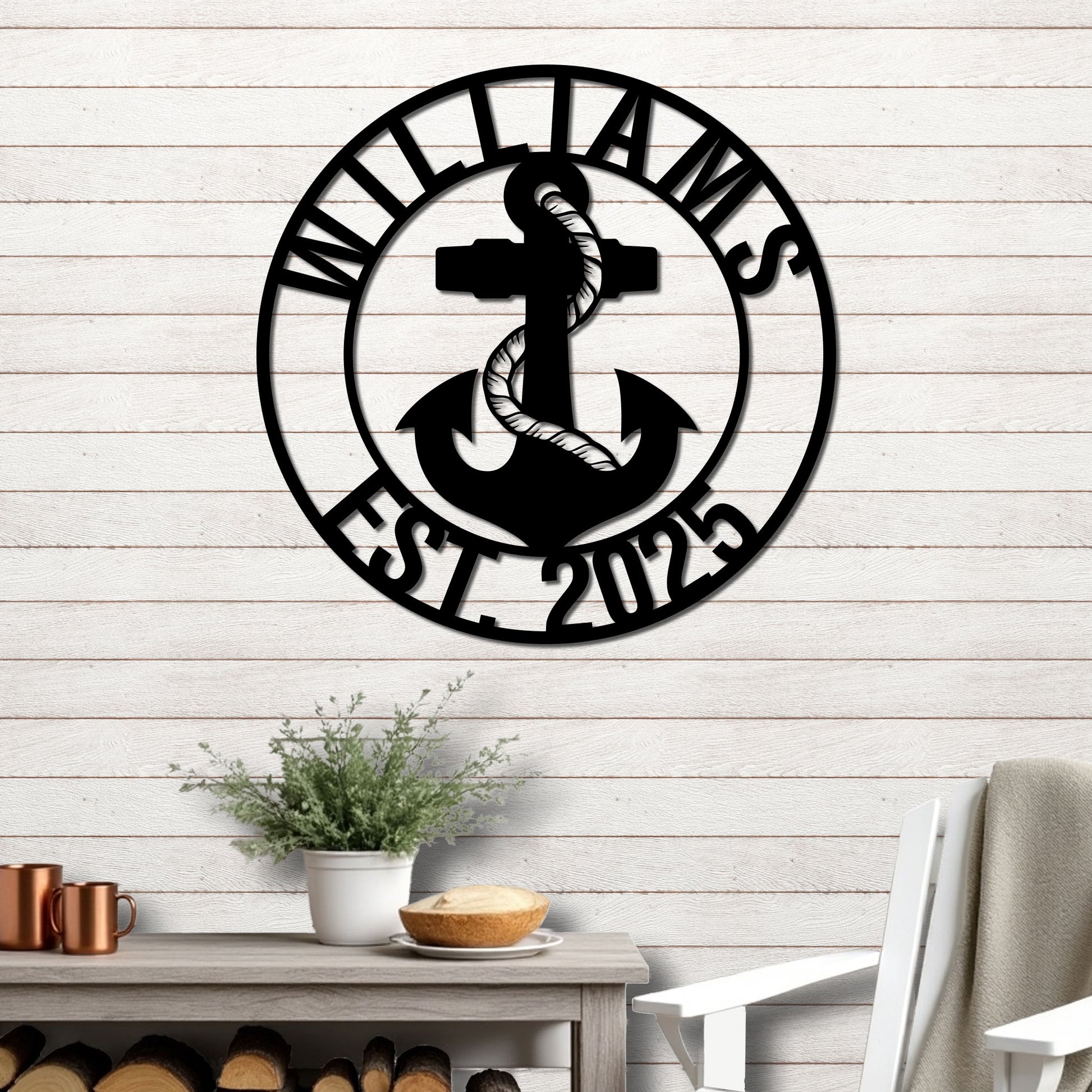 The Name and Year sign featuring an Anchor Design is a versatile decoration suitable for indoor and outdoor use. Crafted from sturdy 16-gauge steel, this sign is coated with premium-grade paint to enhance its longevity and resistance to the elements. Its striking design makes it an excellent addition to any room, adding a personal touch to your space while celebrating important milestones.
