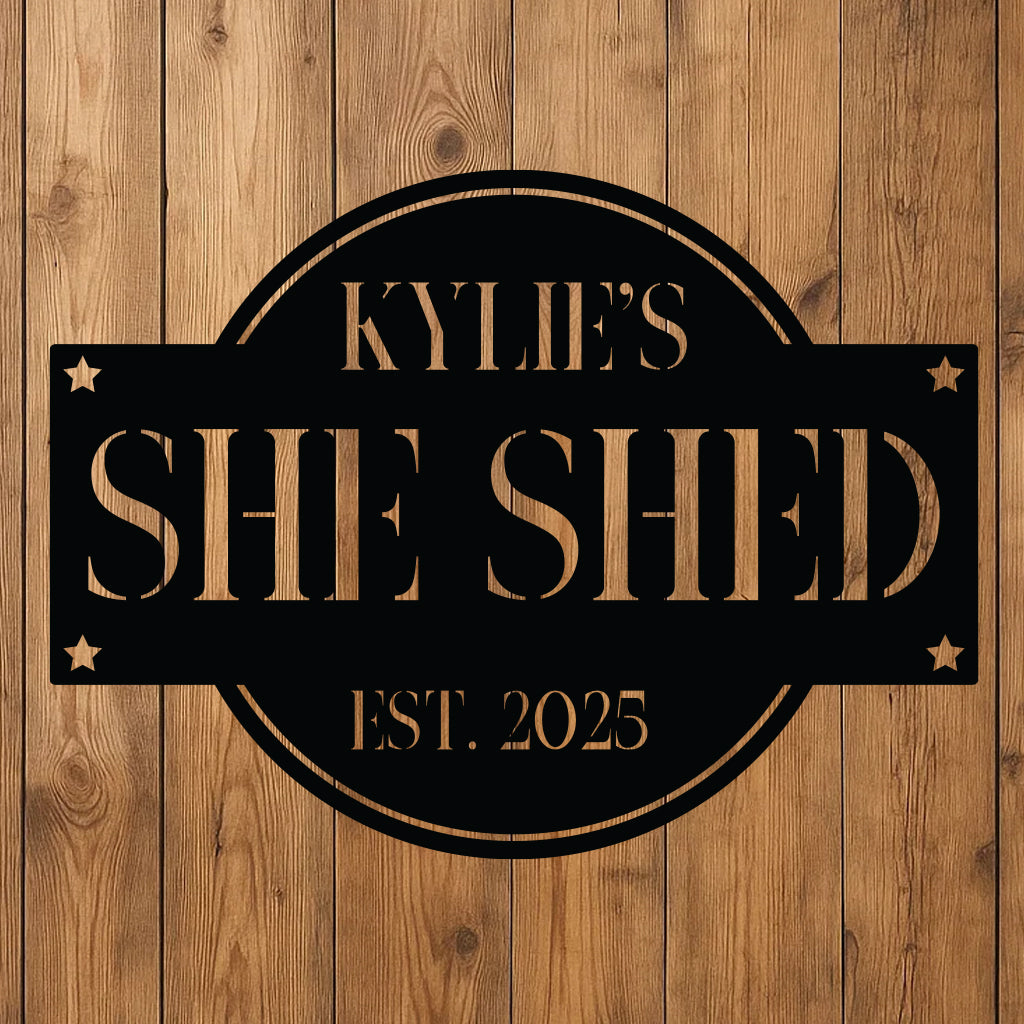Enhance your space with a personalized touch using our custom name sign designed specifically for your She Shed. This versatile sign is suitable for both indoor and outdoor use, crafted from durable 16-gauge steel. Each piece is skillfully painted with premium-grade paint, ensuring long-lasting beauty and resilience in any environment.