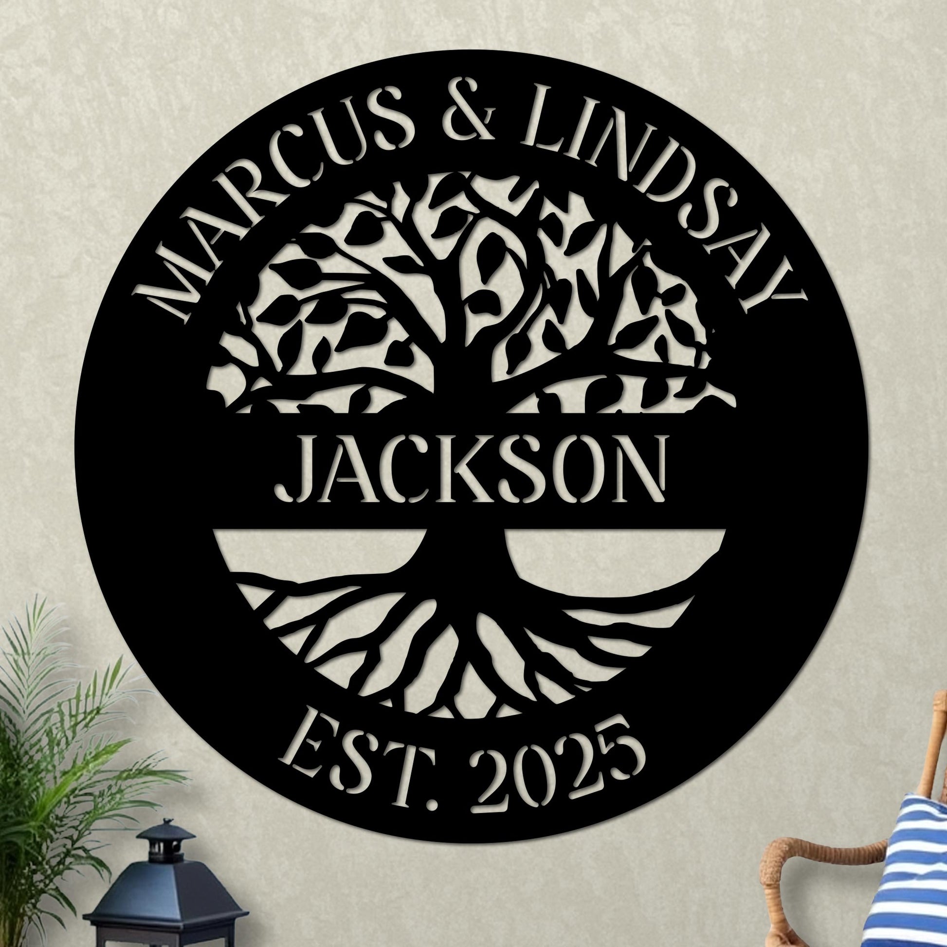 The Tree of Life family name sign is a versatile decorative piece suitable for both indoor and outdoor use. Crafted from durable 16-gauge steel, this sign is designed to withstand the elements while maintaining its elegant appearance. Each piece is coated with premium-grade paint, ensuring long-lasting color and clarity that enhances any space.