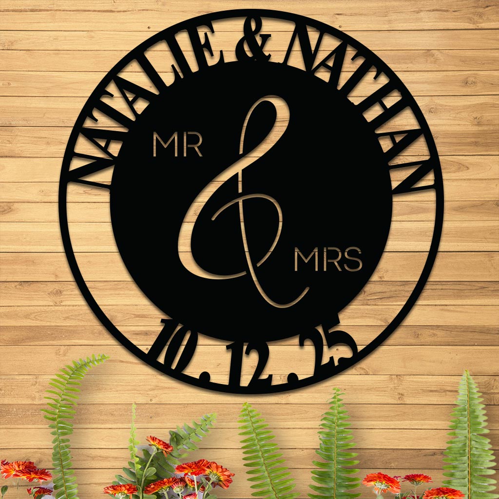 Enhance your wedding decor with our customizable sign featuring "Mr & Mrs," along with your names and wedding date. This charming piece is versatile enough for both indoor and outdoor settings. Crafted from high-quality 16-gauge steel, this wedding sign ensures durability and long-lasting beauty. Each sign is coated with premium-grade paint, designed to withstand the elements while maintaining its vibrant finish. Ideal for adding a personal touch to any room or as a stunning focal point at your wedding.